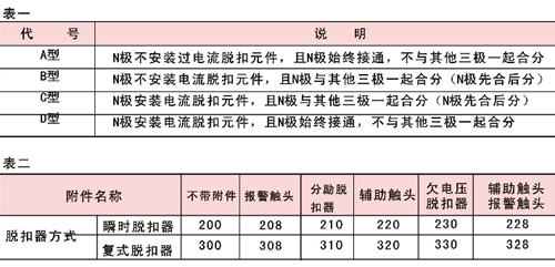 訂貨時(shí)必須寫(xiě)明:產(chǎn)品名稱、型號(hào)、規(guī)格、極數(shù)、脫扣方式及附件名稱、保護(hù)特性、額定電流、額定剩余動(dòng)作電流,訂貨數(shù)量。