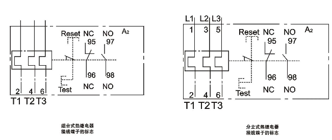 1、具有二種安裝方式,組合式安裝直接插入接觸器,分立式可單獨安裝或安裝在導(dǎo)軌上。